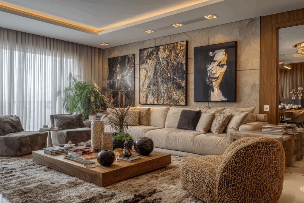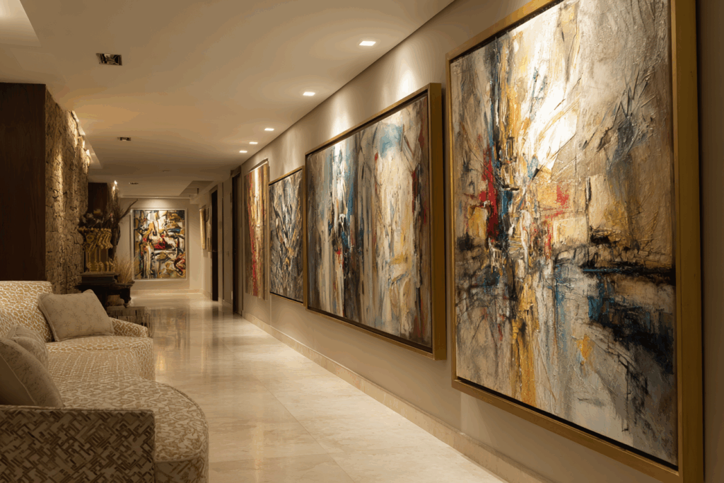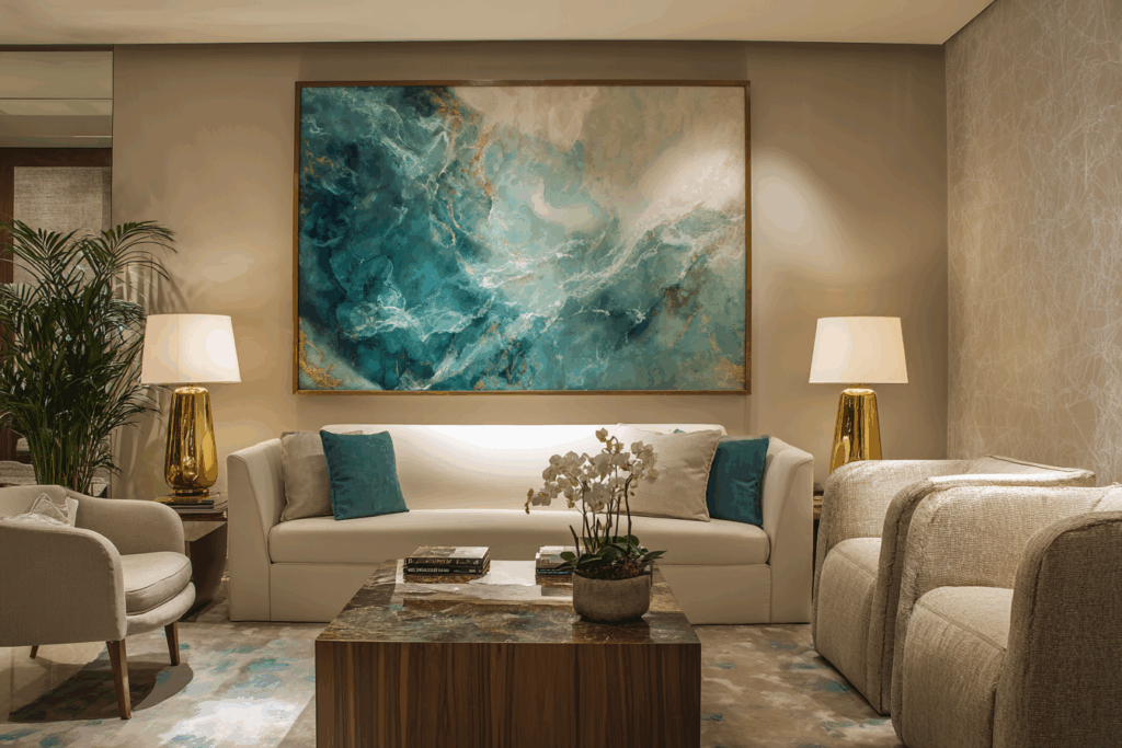 Mais do que um objeto decorativo, o quadro ideal é uma extensão da sua essência. Ele fala sobre quem você é e o que deseja transmitir aos que entram no seu lar. Quando bem posicionado, harmonizado com a iluminação e o mobiliário, o quadro certo pode dobrar o valor visual da sua sala — veja como, reforçando a sensação de elegância e exclusividade.